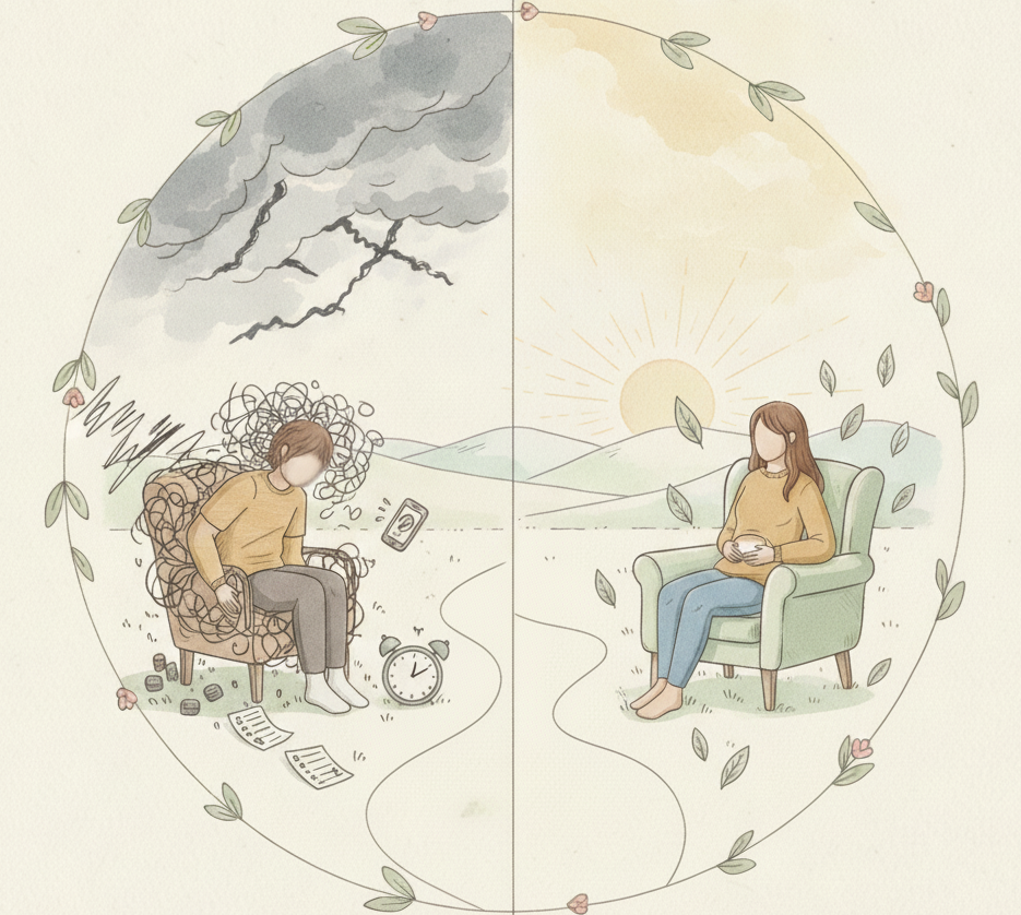 L'être humain passe une grande partie de son temps à ruminer le passé (regrets, jugements) ou à anticiper l'avenir (craintes, planifications). Ce va-et-vient mental est une source majeure de stress et d'anxiété, nous coupant de la seule réalité sur laquelle nous avons une prise : l'ici et maintenant.
