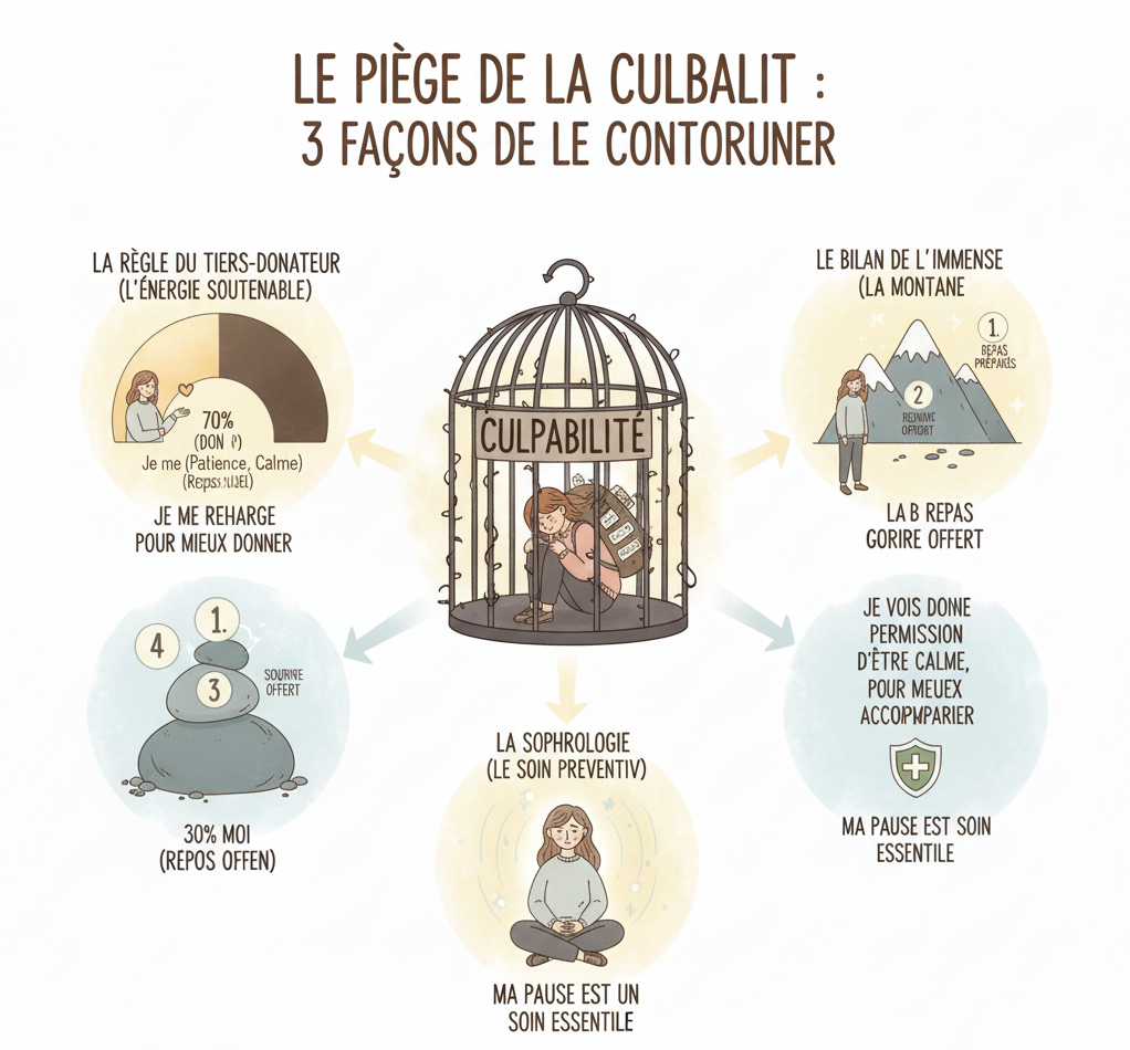 Le Mantra : Remplacez la pensée "Je suis égoïste" par : "Je me donne la permission d'être calme pour mieux accompagner."